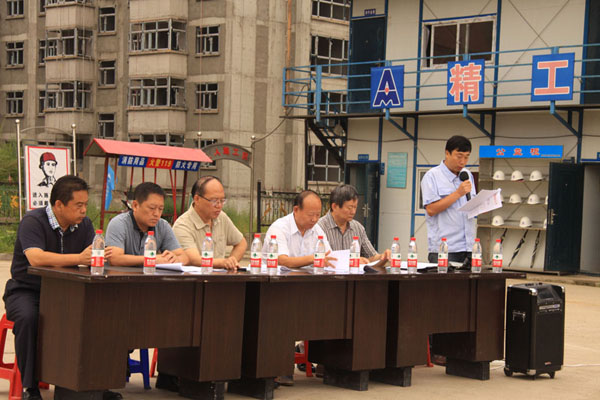 誓师动员会上由项目部关翔飞宣读了凤凰城A组团项目C区二标段工程施工“百日会战”实施方案。为确保“百日会战”的工作取得实效,集团决定对百日会战的实施过程及结果进行验收和评价。届时将对有功人员表彰和重奖。将对有过人员进行问责和处罚。要求全体干部职工,以高度的责任心和使命感,以确保工期质量安全,打造精品工程为宗旨;造福百姓奉献社会,为牡丹江市的保障性住房建设贡献力量。