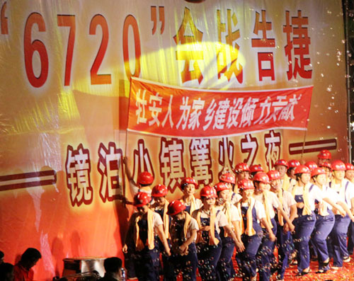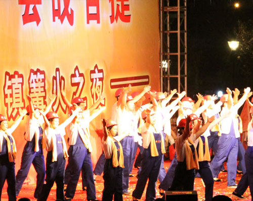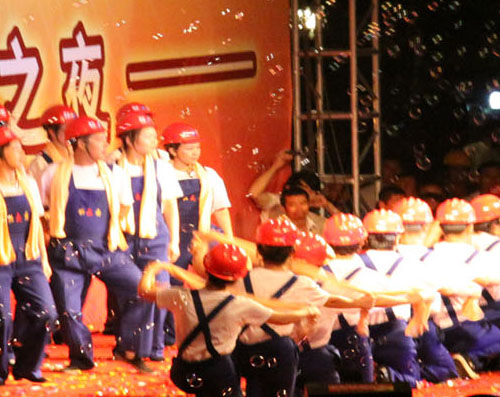 开业当晚,我公司代表施工企业,为“镜泊小镇篝火之夜”文艺汇演奉献了节目——舞蹈《咱们工人有力量》。