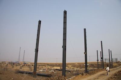 在项目部的周密组织下,全体施工人员顶烈日、战风雨,迎着朝阳进现场,送走夕阳挑灯干,以超常规的打法抢进度,全力加快光伏产业园区建设步伐,截止发稿,基础施工已经全部完成,现已经开始钢构立柱吊装、钢屋架安装阶段,工程形象一天一个样。据项目经理介绍,在整个园区开工的工程中,咱们的进度是最快的。项目部有信心通过“百日攻坚会战”,全力加快施工速度,当好园区全线的领跑者,为公司树立企业良好形象,向市政府递交满意的答卷。