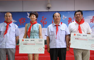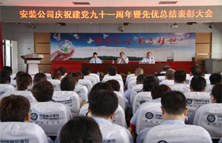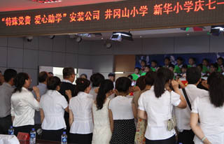 6月27日,公司在井冈山小学礼堂召开开庆祝建党九十一周年暨先优总结表彰大会,会议总结了一年来公司的党建工作,对喜迎"十八大"提出了新要求。大会表彰了2011-2012年度先进支部和优秀党员。(新近落成的井冈山小学教学楼,是由公司承建的驻区小学中最好教学楼)。会后,张秋董事长、党委副书记原毅伟代表公司全体党员,将捐资助学的特殊党费(壹万贰仟圆),转交给井冈山和新华两个小学的校长,以此表示企业党组织对教育事业的关爱和责任。三个单位的党员重温了党员誓词。井冈山、新华两个小学的师生与公司员工同台表演,大唱红歌,欢庆党的九十一岁生日。